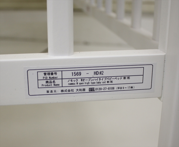 ノモック Wオープン ハイタイプベビーベッド ホワイト 120×70