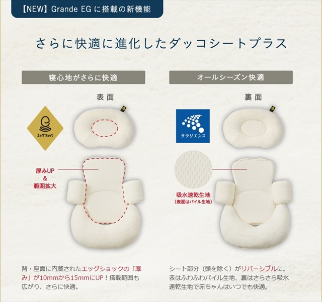 背・座面のエッグショックの厚みが10mm→15mmにUP&搭載範囲が拡大