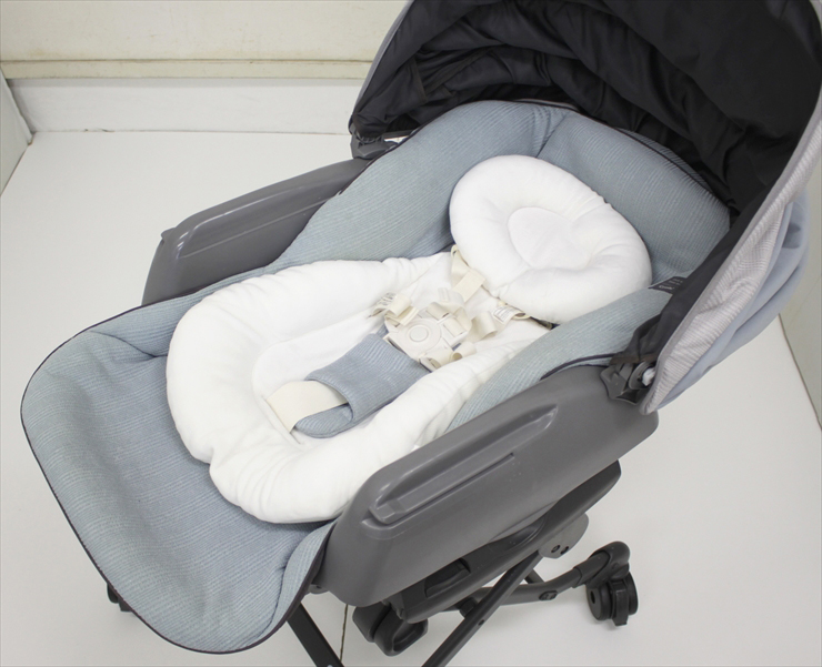 ・本体シート、新生児クッション類、幌とも目立つ汚れや色あせは見受けられません。