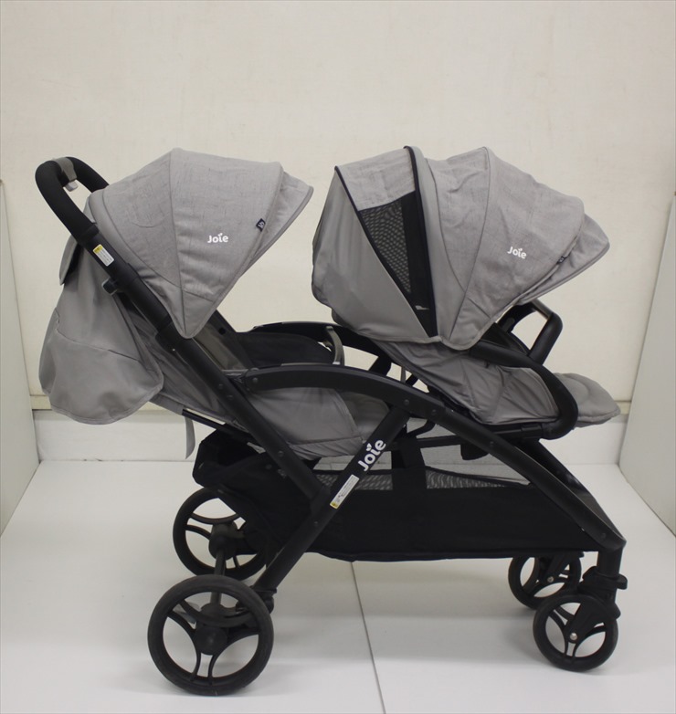 イギリスのメーカーJoieの縦型二人乗りベビーカーです。後席は生後1ヶ月から利用できます。前席は腰が据わってからになります。双子さんはもちろん兄弟姉妹でもご利用いただけます。10.1kgと双子ベビーカーとしては比較的軽量で、折り畳みサイズが幅45cmとコンパクトに畳めます。