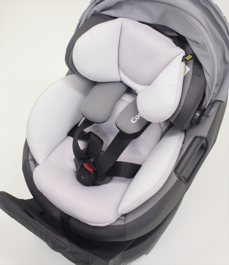背中で守るベッド型、3層サイドプロテクション、低重心・低座面設計など、赤ちゃんを守る機能がいっぱい。また、赤ちゃんの自然な姿勢をキープするフラット設計インナークッションやもちふわクッション、通気窓のついた大型スリープシェルなど、快適に過ごすための工夫も満載。安全・安心のチャイルドシートです。