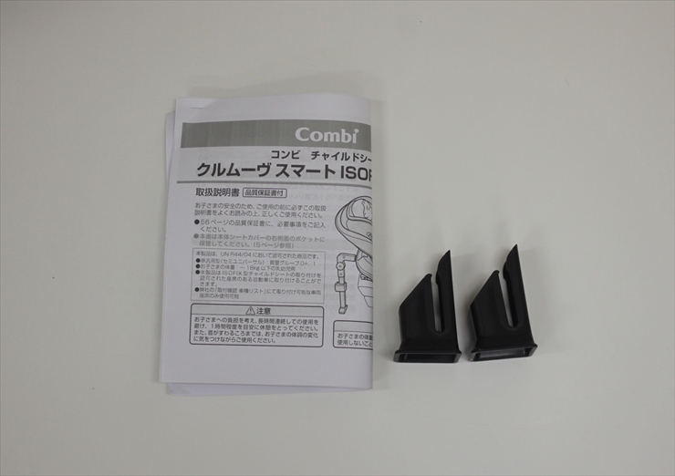 説明書(コピー)、ベースカバー(本体取付済み)、ISOFIXガイドキャップが付属いたします。