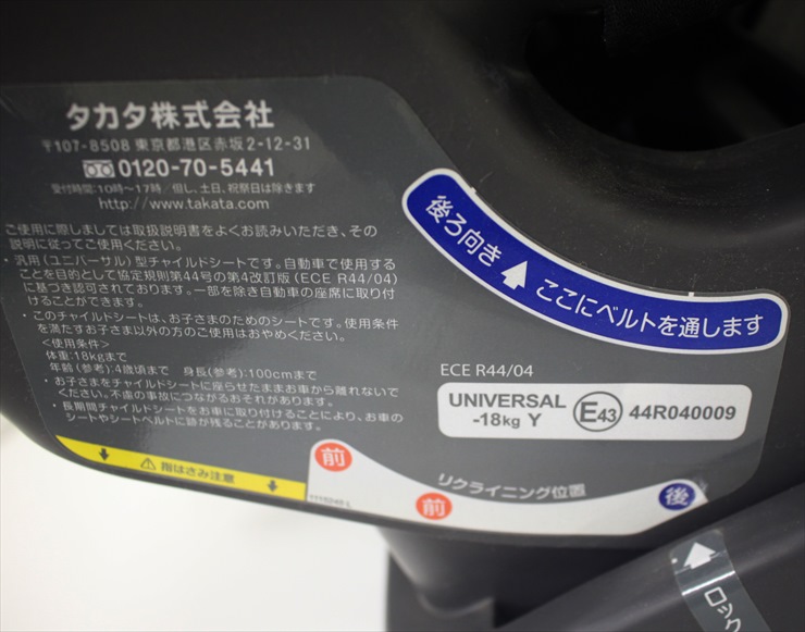 協定規則第44号の第4改訂版(ECE R44/04)に基づき認可された製品です。
