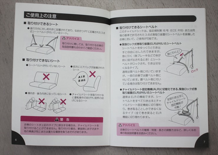 取付けできないシートベルトにつきましても、説明書の画像にてご確認ください。