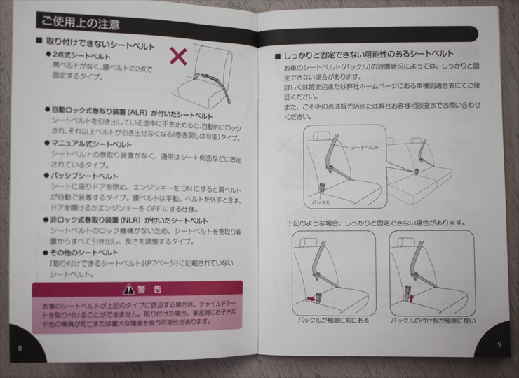 ※取付けできるシートベルトは、説明書の画像にてご確認ください。