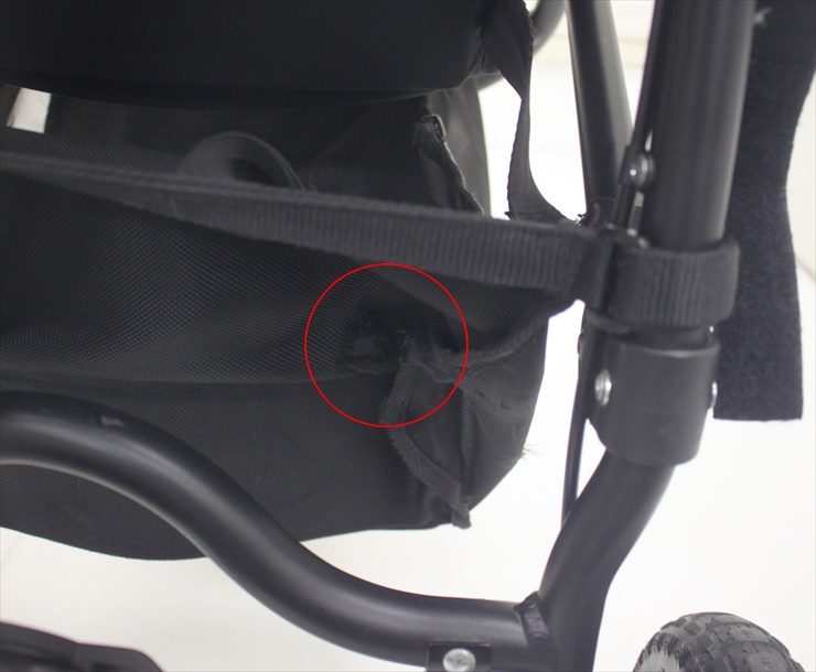 ・下部の荷物入れに目立つスレがあり、少し穴が開いてしまっています。(荷物入れの画像の赤い丸印部分です。)