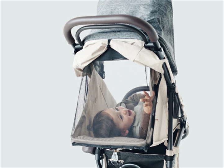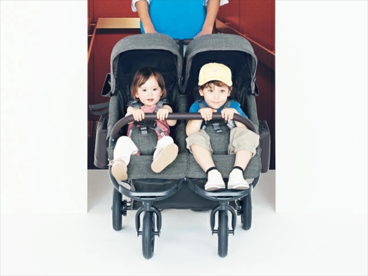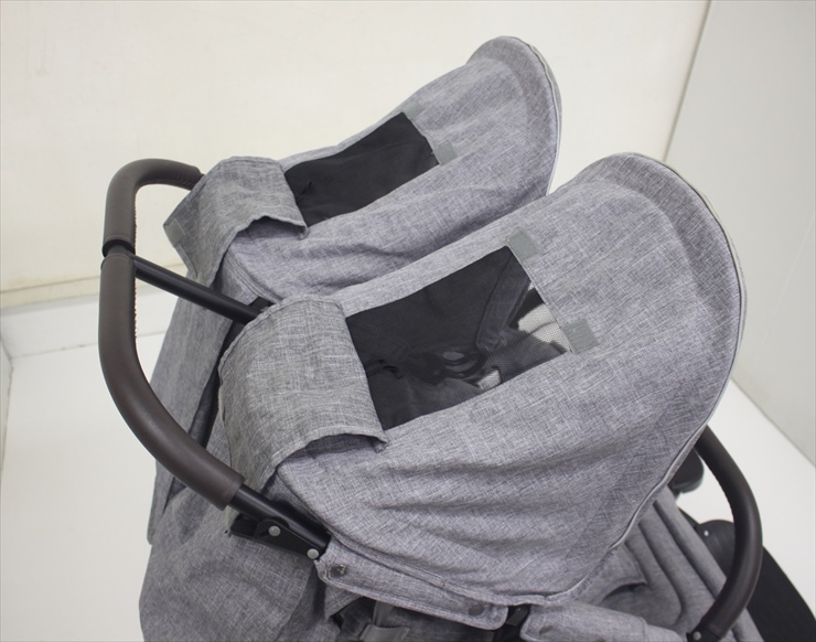 エアバギーココの2人乗り、新生児対応モデルです。リクライニングベルトでシート角度(115°-155°)が自由に調整できますので、お子様が寝てしまっても安心です。こちらはフラットタイプのサンキャノピーとなっております。