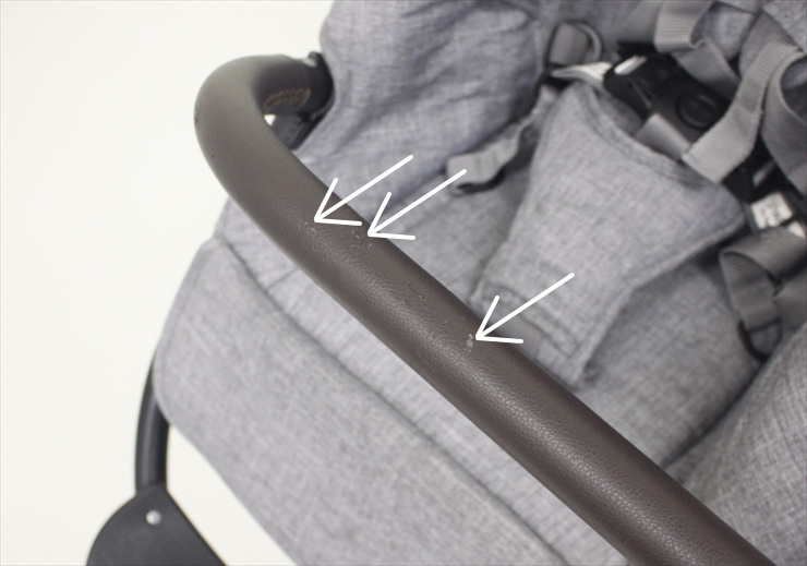 ・ハンドルのレザー部分とフロントバーのレザー部分にご使用に伴うスレが見受けられます。(写真の矢印部分などです。)