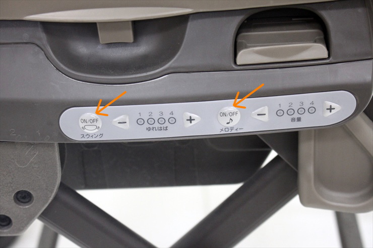 ・操作部分のスウィング入切ボタン、メロディ入切ボタンの表面フィルムにキズが見受けられますが、ボタン操作に問題はございません。(写真の矢印部分です。)