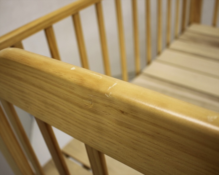 ・赤ちゃんを寝かせるすのこ板に強いダメージは見受けられません。