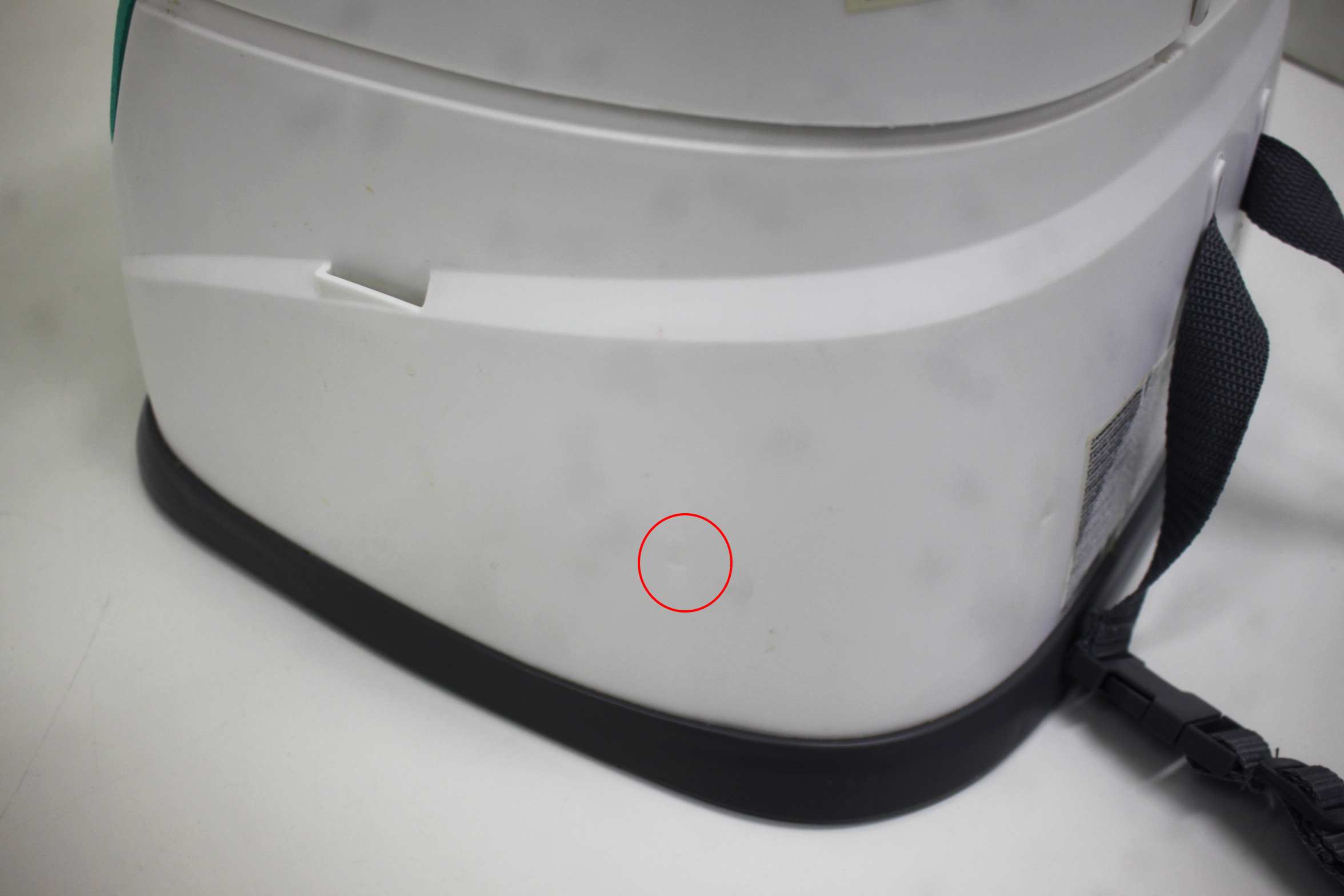 ・本体側面にご使用に伴う凹みが見受けられます。(画像ではわかりにくいですが、赤い丸印をつけた部分です。)