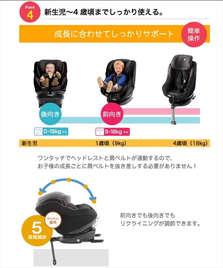 後ろ向き:新生児-18kg(4歳頃)
