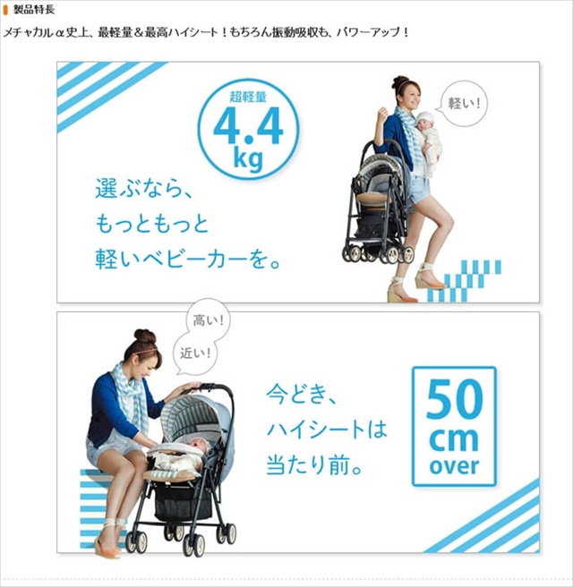 発売時期順に並んでいますので、ベビーカーの進化の過程をご確認いただけます。