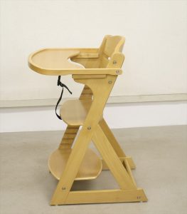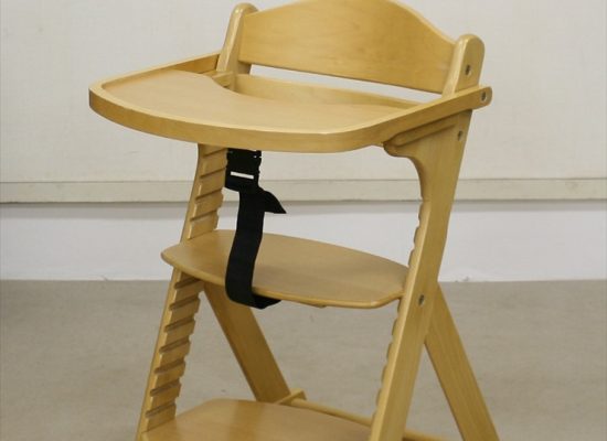 カトージ製の食事用の木製ハイチェアです。木製のガード付きですのでお座りができる頃から使用することが可能です。細かく段階的に高さ調節ができるので長くご利用される方が多いこともあり、当店への買取依頼は少なめです。