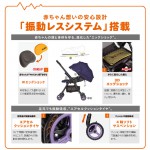 重量4.6kgと軽量ながら、座面にエッグショックパットが入り、頭部には従来の2倍の厚みのエッグショックパットが装備され、クッション性の高いベビーカーになっています。また、車輪は4輪ともソフトサスペンション付きで、側面に空気室がついたエクセルクッションタイヤでも振動を吸収します。
