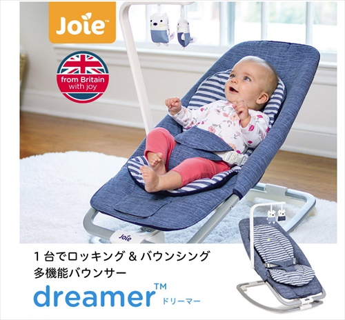 イギリスのメーカーJoie製のバウンサーです。ゆらゆらゆりかごのように揺らすことができる「ロッキング」機能と、お子様の身体の動きで上下に揺らすことができる「バウンシング」機能を搭載しています。さらにメロディーとバイブレーション機能付きと多彩です。当店への買取は少ないですが、使用期間の短いきれいな状態でお売り頂くことが多い機種です。