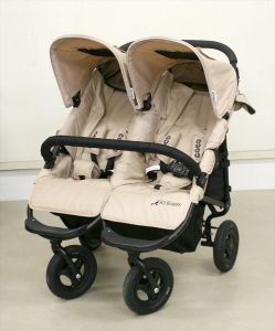 GMPインターナショナル製の大人気の3輪ベビーカー「エアバギーココ」の二人乗り横型ベビーカーです。それぞれの座席をリクライニングさせることができますので、双子さんはもちろん、年の近い兄弟でも使用することができます。重さと大きさがありますが、横型2人乗りのベビーカーとしてはスマートな幅71.5cmですので、一般的なドアやエレベーターも通り抜けが可能です。
