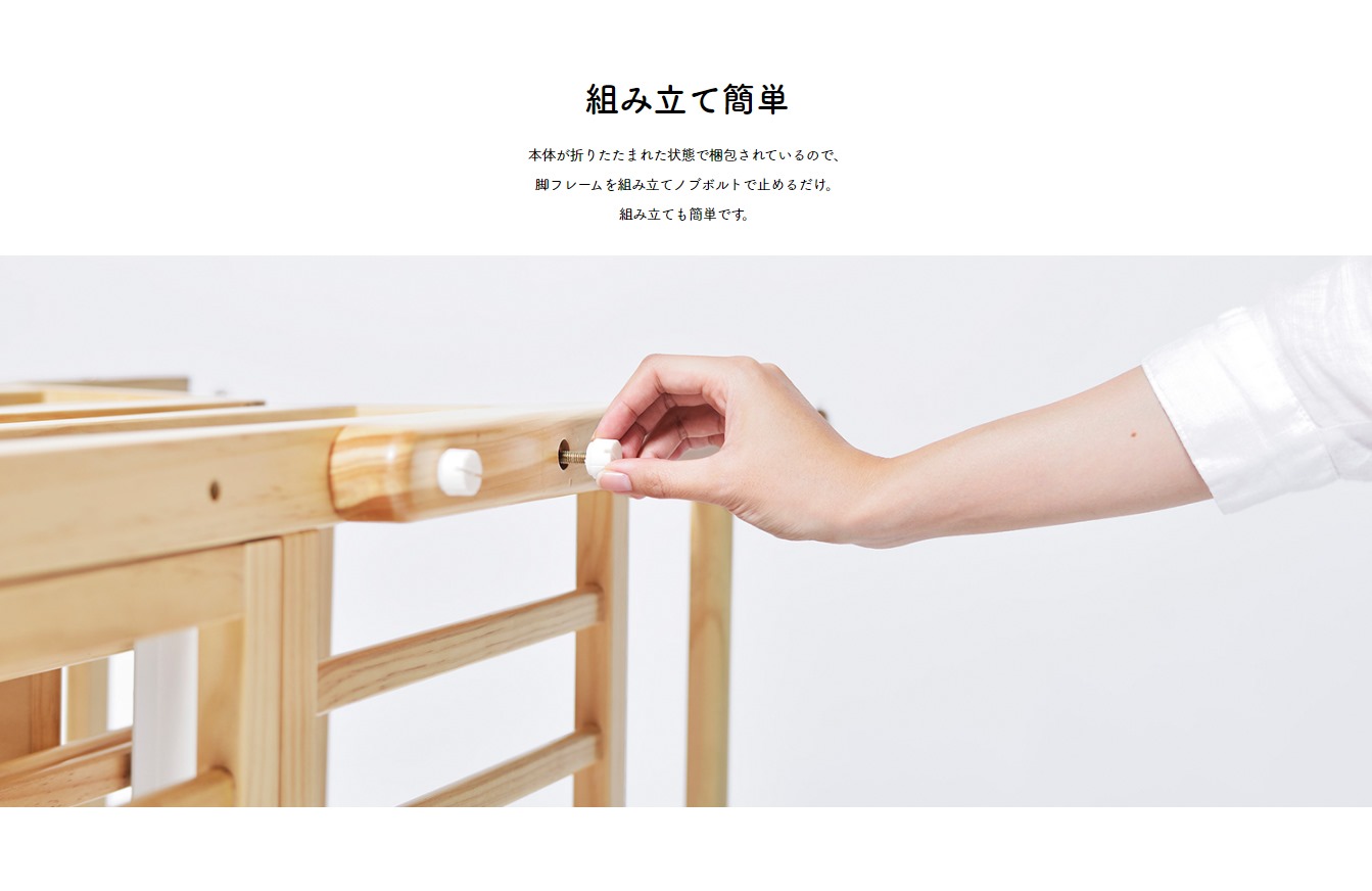 脚フレームを組み立てノブボルトで止めるだけの簡単組み立て