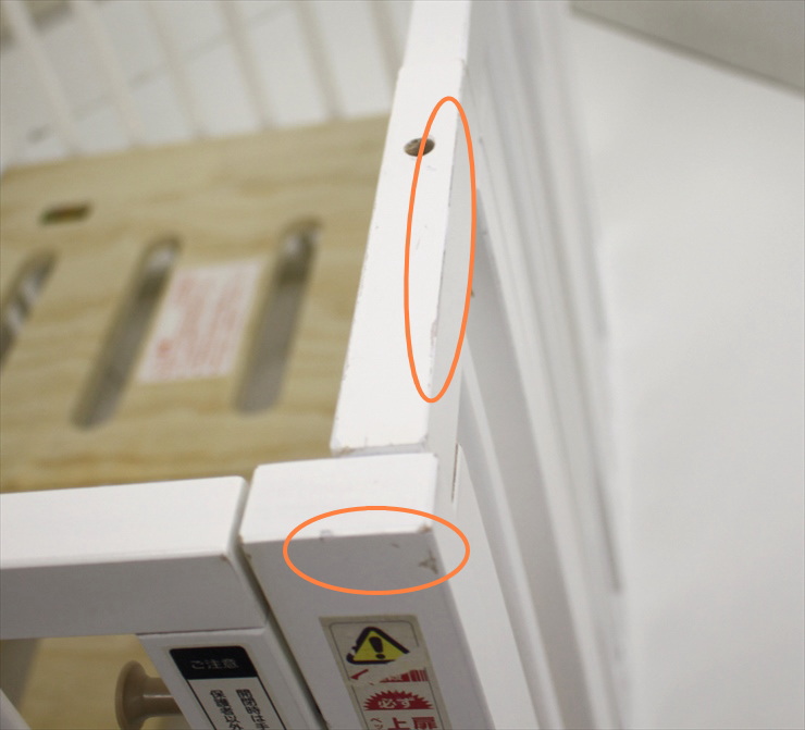 ・柵上部に一部ひび割れがあり、接着剤にて修正した跡がございます。(画像の矢印部分です。)