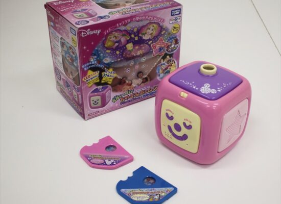 2.4mの一般的な天井高で床に置いて投影した場合、直径約3.8mと天井いっぱいに映像が広がります。「星に願いを」「くまのプーさん」などのディズニー曲や、子守歌、クラシックなど、全部で31曲入り。みんなで素敵なお休みタイムを。