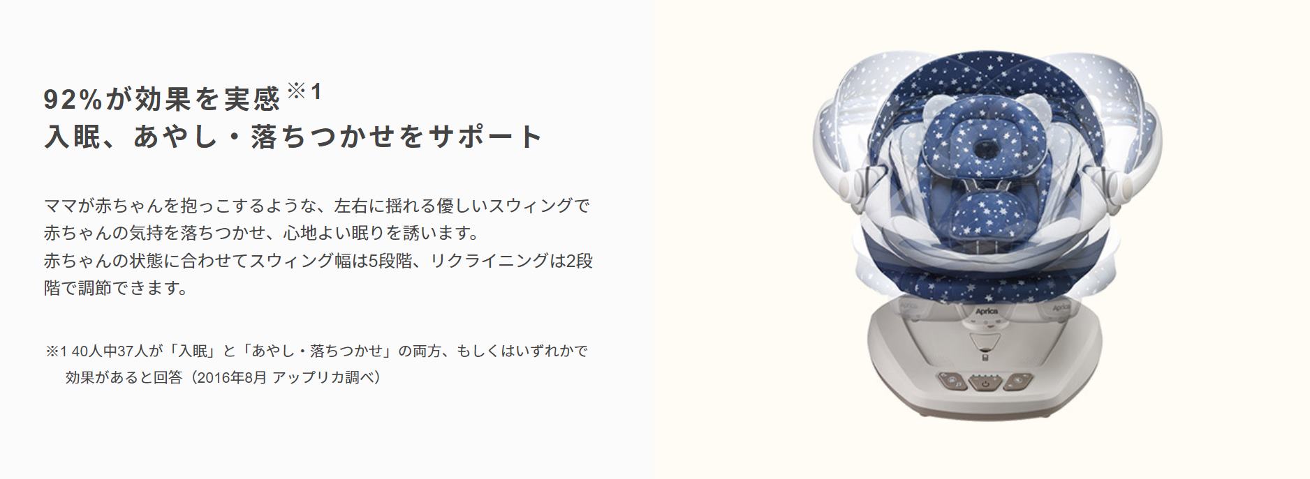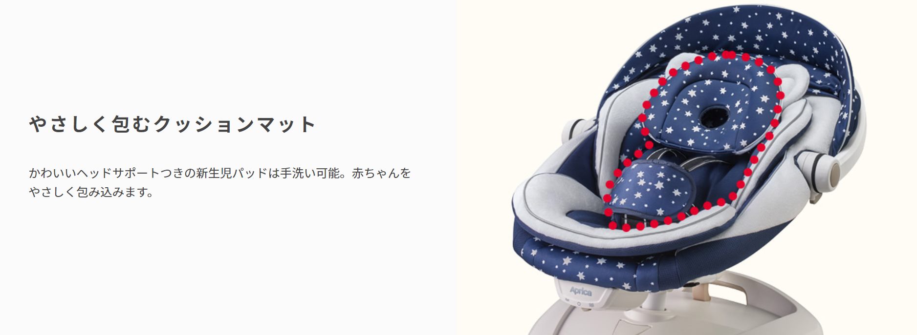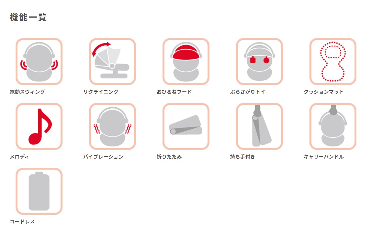 ※スウィング機能は、お子さまが製品からはい出そうするようになるまで(月齢の目安:9ヶ月頃)