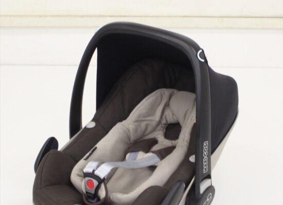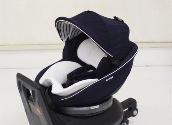 新生児から1歳ごろ(13kg未満)までのお子様用のチャイルドシートです。フラットにはなりませんが、抱っこされているような程良い角度で乗せることができます。キャリータイプですので、赤ちゃんが寝てしまってもシートごと移動ができ、室内でも簡易ラックとして使用できますので、寝ていることの多い低月齢の時はとても使い勝手が良いと思います。こちらは車両シートベルトで取り付ける機種になります。