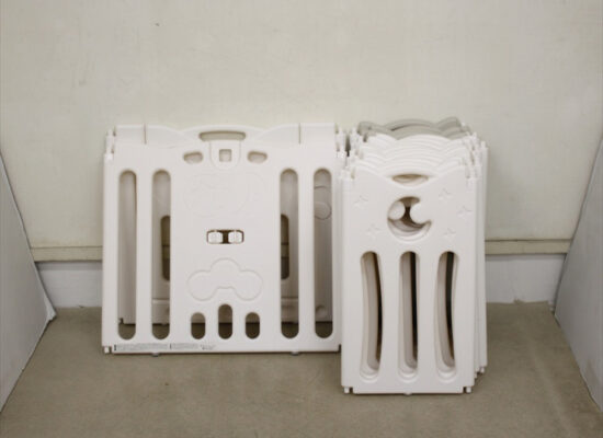 長方形(2種類)、L字、円形になるサークルです。「押す・回す・動かす」のゲームパネル付きでサークル内で楽しく遊べます。ドアロックが外側についていますので安心。使わない時は、折りたためてコンパクトに収納できます。