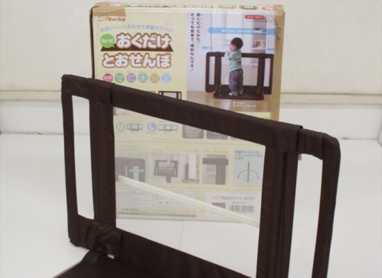 通路に固定して使用するタイプと異なり、通路部分に置くだけで仕切りを作るベビーゲートです。おうちの中で必要な場所にさっと移動させて使用することができます。軽量なので持ち運びやすく、コンパクトに折りたため、収納場所も取りません。小さなお子様のいるご家庭で、大変便利なベビーゲートです。