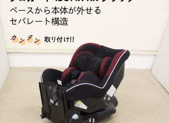 ISOFIX固定タイプです。本体からベース部分が取り外せるセパレート構造なので、お車への取付けが簡単です。頭も体も包み込むシートは3Dメッシュ素材で、安全性と快適性を兼ね備えたチャイルドシートです。