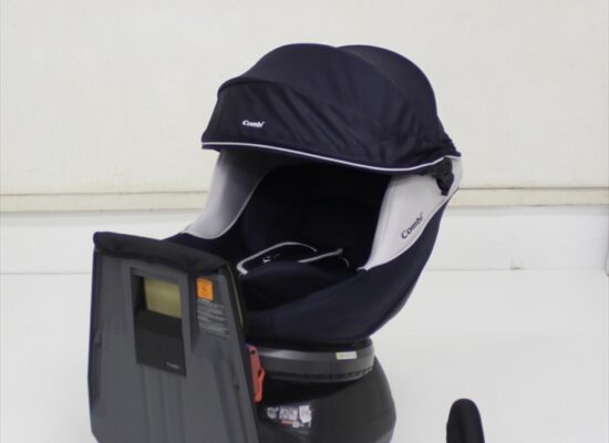 コンビ×トイザらス・ベビーザらスのコラボレーションモデル『Simplight(シンプライト)』シリーズの360度回転タイプのチャイルドシートです。こちらは車両シートベルトで固定するモデルになります。どのリクライニング角度からでもゆび一本で回転操作ができるようになり、直感的に操作しやすくなりました。