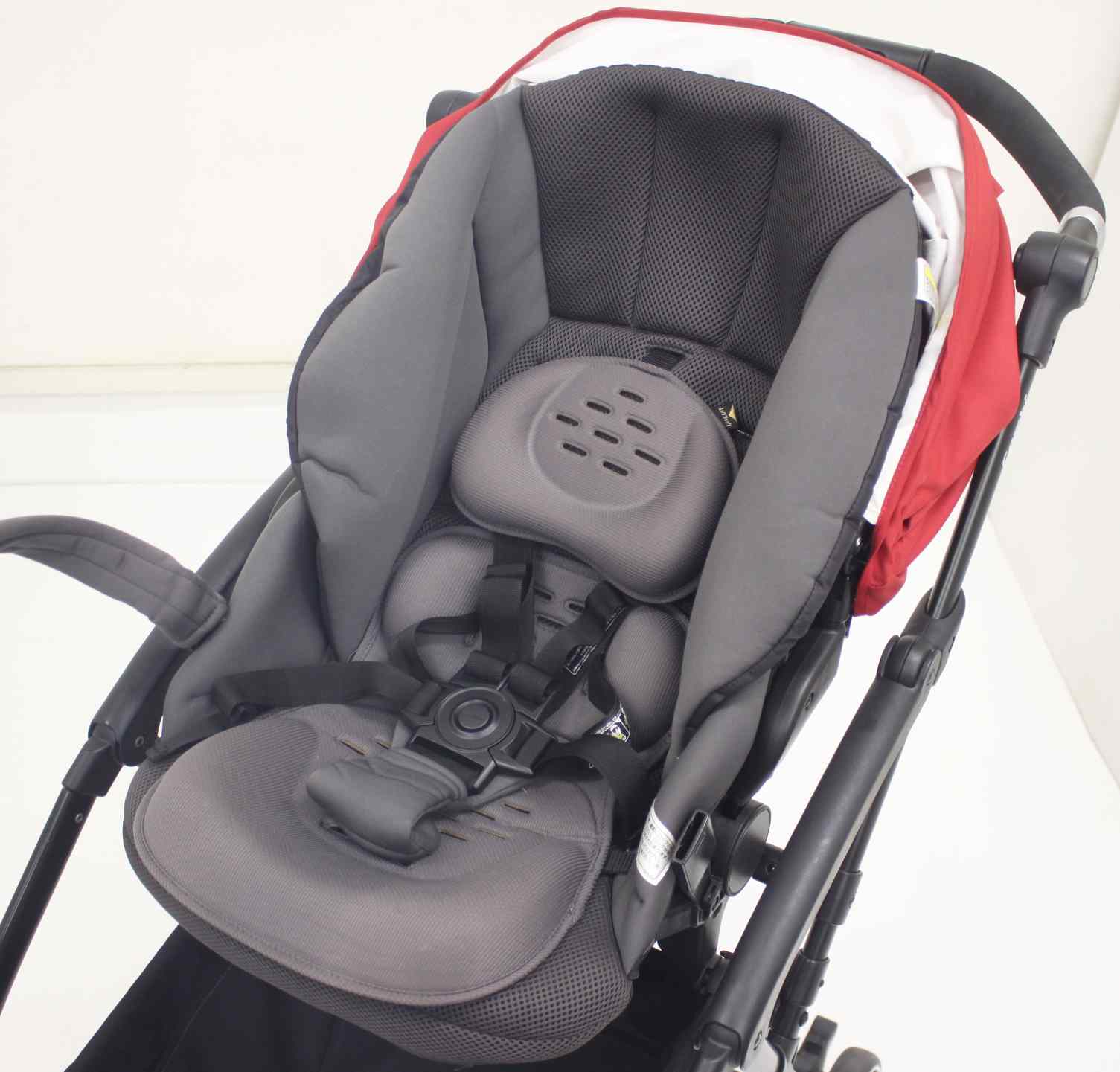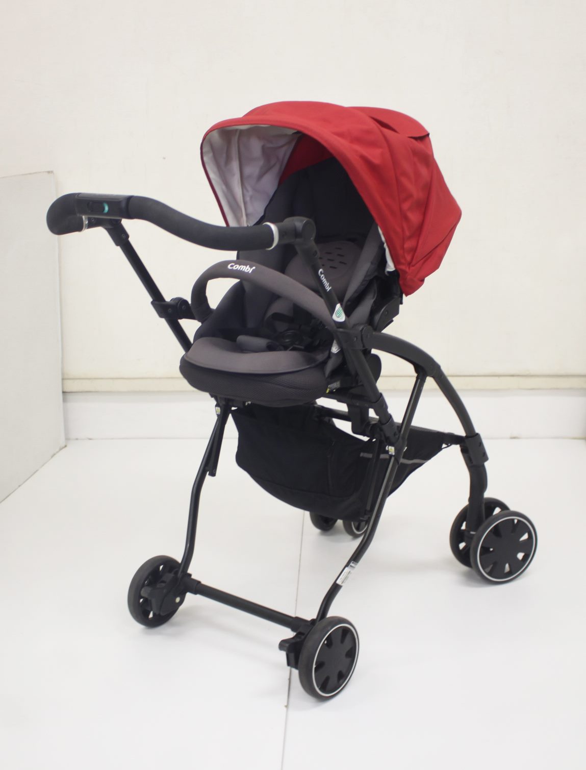 コンビの高級志向ベビーカーです。コンビ史上最高の地上高61cmのハイシートですので、お子様のお世話がしやすく、街中のカフェなどでもハイチェアのように利用できます。座面を取り外して付け替えることで対面と背面の切り替えが可能です。対面背面を切り替える際にハンドルでの切替はできませんが、フレームとハンドルが一体化していることでフレームの歪みが出にくく、小回りが利かせやすくなっています。