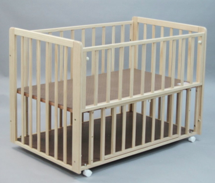 カトージ製の通常サイズのベビーベッドです。スライド扉ですので、あまりスペースのない場所でもスムーズに開閉することができます。下部には、収納スペースが設けられています。キャスター(ロック機能付き)がついていますので移動も可能です。