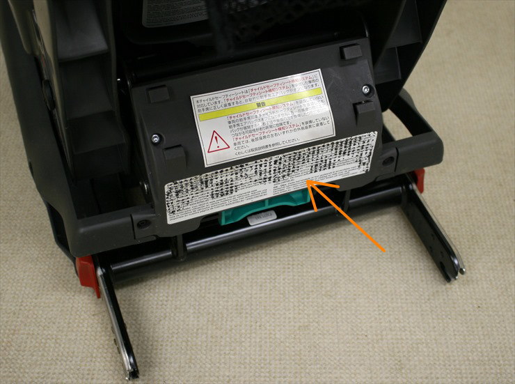・本体背面の注意書きラベル部分にお車のシートの素材が付着してしまっています。(写真の矢印の部分です。)