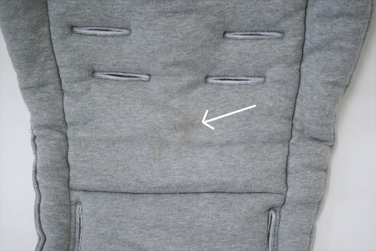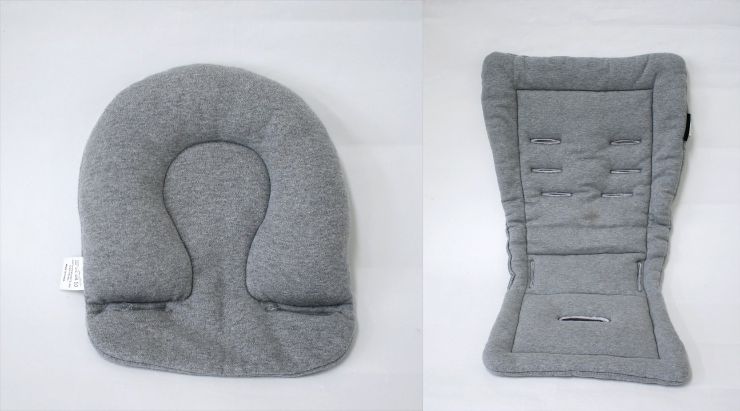・ヘッドサポート・ストローラーマットともに、強いクッション性の低下や目立つ汚れはありませんが、何度か洗濯されたようで綿特有の毛羽立ちなど、それなりの使用感を感じます。