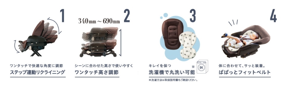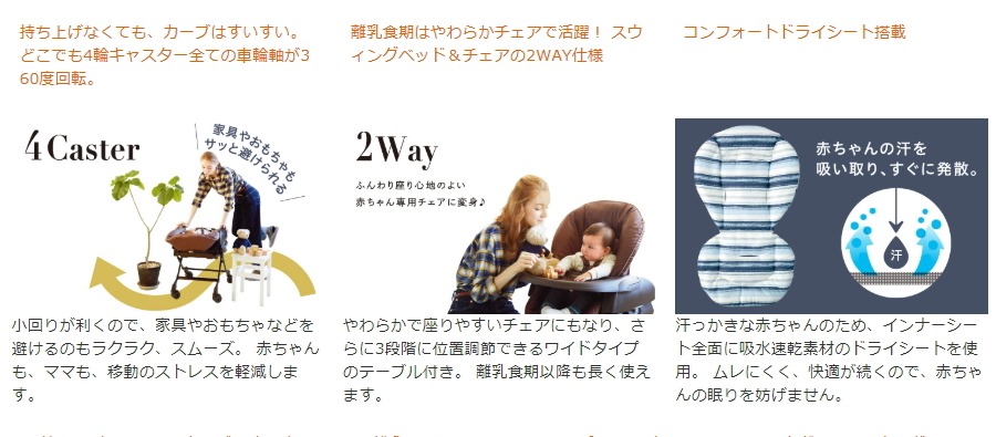 スウィング使用:新生児-5、6ヶ月頃(体重8kg)まで