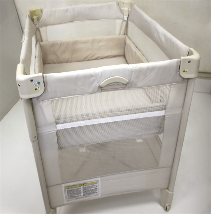 長さ150cm×幅140cmの大きなベビーサークルで、生後5ヶ月頃から24ヶ月頃まで使用可能です。ねじ4本を外してたたむとコンパクトになります。フローリングでもすべりにくいゴム足付です。
