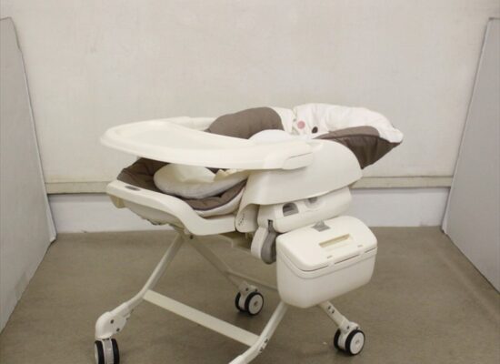 抱っこしながらでもゆび1本でらくらく360°ターン。赤ちゃんを、サッと乗せ降ろしできます。