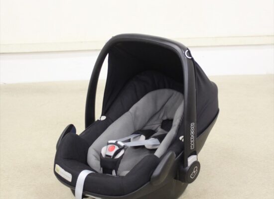 新生児から1歳ごろ(13kg未満)までのお子様用のチャイルドシートです。フラットにはなりませんが、抱っこされているような程良い角度で乗せることができます。キャリータイプですので、赤ちゃんが寝てしまってもシートごと移動ができ、室内でも簡易ラックとして使用できますので、寝ていることの多い低月齢の時はとても使い勝手が良いと思います。こちらは車両シートベルトで取り付ける機種になります。