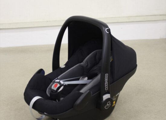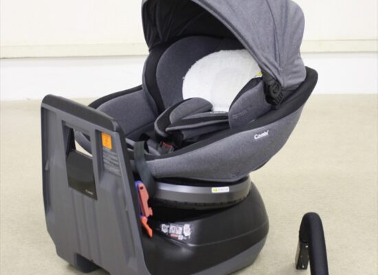新生児から1歳ごろ(13kg未満)までのお子様用のチャイルドシートです。フラットにはなりませんが、抱っこされているような程良い角度で乗せることができます。キャリータイプですので、赤ちゃんが寝てしまってもシートごと移動ができ、室内でも簡易ラックとして使用できますので、寝ていることの多い低月齢の時はとても使い勝手が良いと思います。こちらは車両シートベルトで取り付ける機種になります。