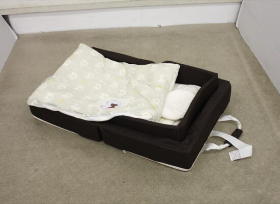 バッグ型に折り畳んでコンパクトに収納、持ち運びが可能なベビーベッドです。コンパクトベッドサイズですので、ベビーベッドと併用してご利用いただくこともできます。また、帰省や旅行先でもおうちのベッドが利用できるので、お子様も安心かと思います。寝ている時間の多い低月齢時に特に活躍するアイテムとしてオススメです。