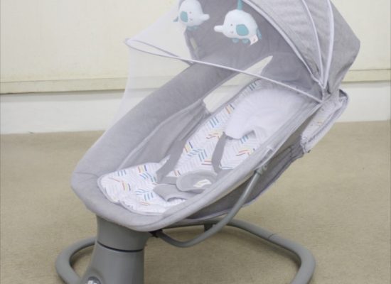 5点式シートベルトで安心して使用可能です。シートは洗濯できるので、いつでも清潔に保てます。お子様が喜ぶゾウの人形や、光を遮断できる幌、蚊帳もついています。角度は2段階調節なので、0〜1歳のときは、揺りかごやロッキングチェア、2歳を過ぎたら、角度を立てて椅子として使用できます。
